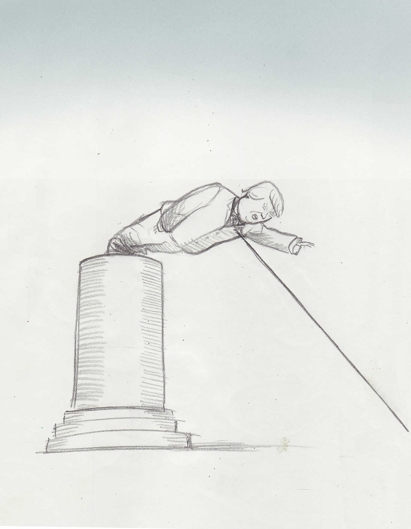 This was an early concept sketch, but no sooner had I done it than I saw online that US illustrator Edel Rodriguez had already produced an almost identical image. Back to the drawing board...